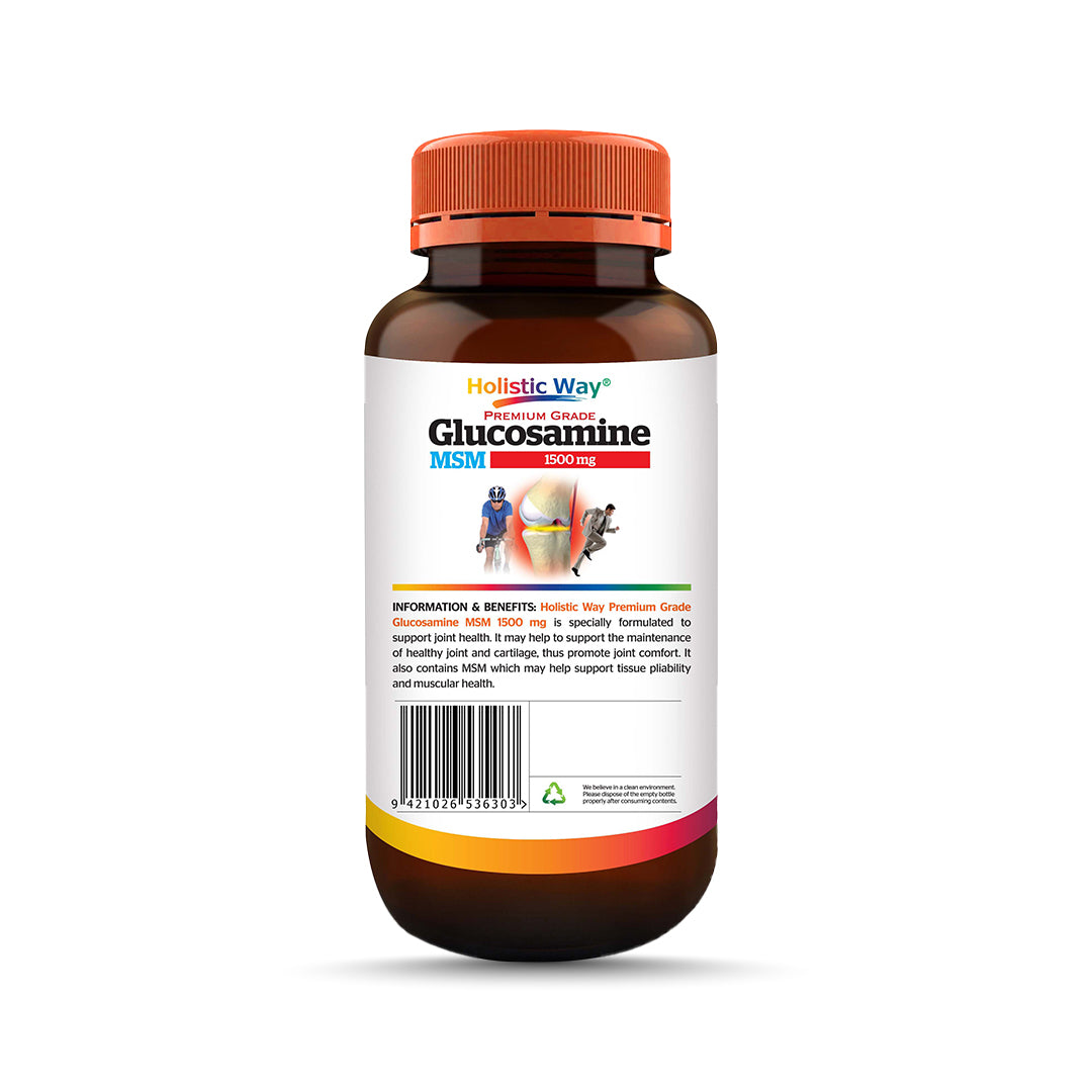 Holistic Way Premium Grade Glucosamine MSM 1500mg is specially formulated to support joint health of both men and women. Glucosamine, the building block of cartilage, helps to: