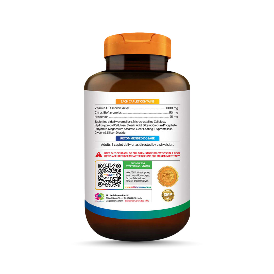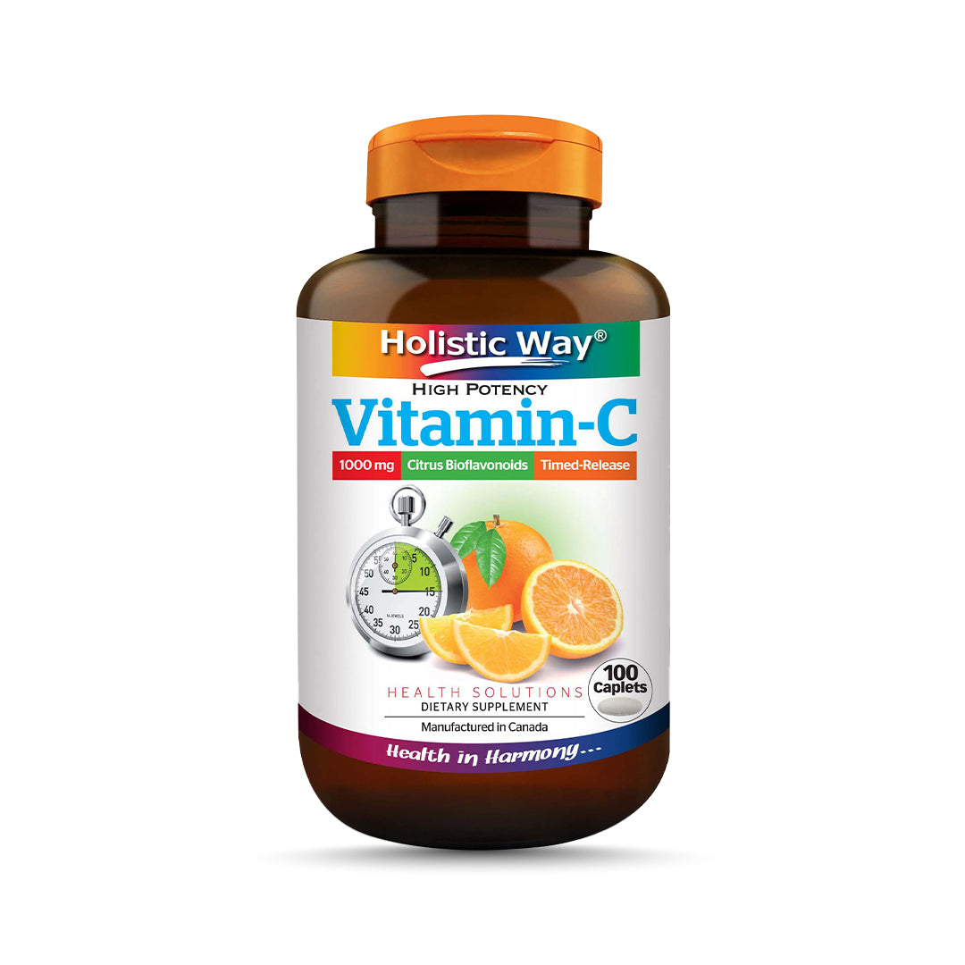 Holistic Way High Potency 1000mg Timed-Release Vitamin-C is a powerful antioxidant that helps support a healthy immune system and stimulates collagen growth. This formulation is enhanced with natural Citrus Bioflavonoids, plant components known to help improve circulation. The timed-release form gradually supplies Vitamin-C throughout the day, ensuring sustained support for your body.