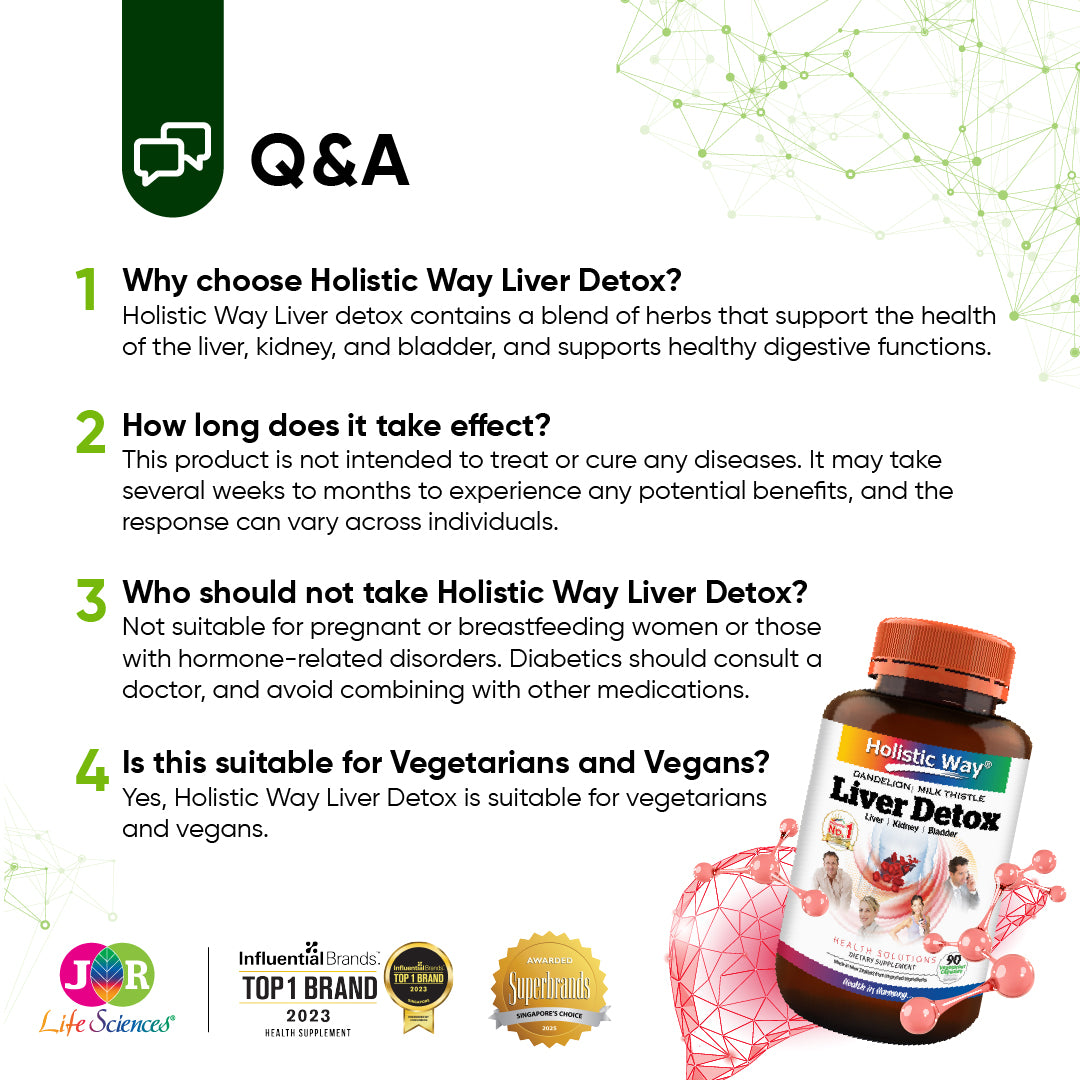 Holistic Way Liver Detox is a special formulation that uses specially selected herbs that may help in the improvement of your health and general well being and may also help in maintaining healthy digestive functions in your digestive system. It is important to take care of our liver because it regulates most chemical levels in the blood.