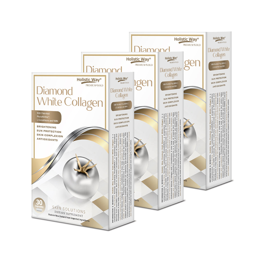 Holistic Way Premium Gold Diamond White Collagen is a comprehensive All-in-One formula containing PhytoflORAL®, a proprietary ingredient derived from non-GMO tomatoes. Rich in carotenoids such as Phytoene and Phytofluene, it may help support brightening of skin, apart from helping to support body’s natural response towards UV exposure and provide essential sun protection. Added with Hydrolysed Marine Collagen and L-Glutathione, it may help support skin hydration, skin health and complexion. Polypodium leucotomos is a type of topical fern which helps support body’s natural response towards UV exposure and provide essential sun protection.