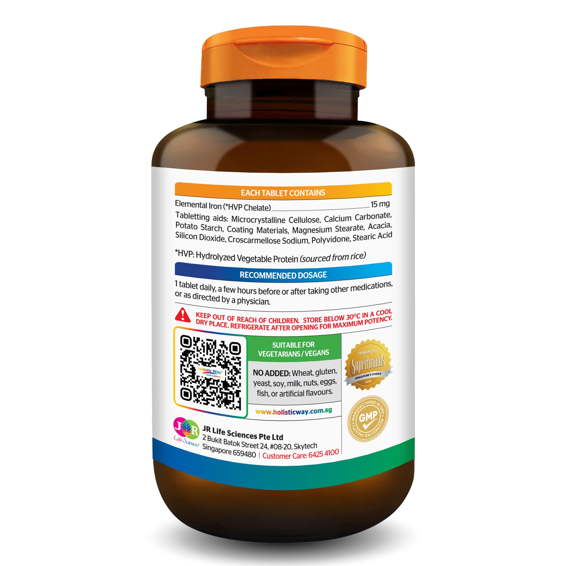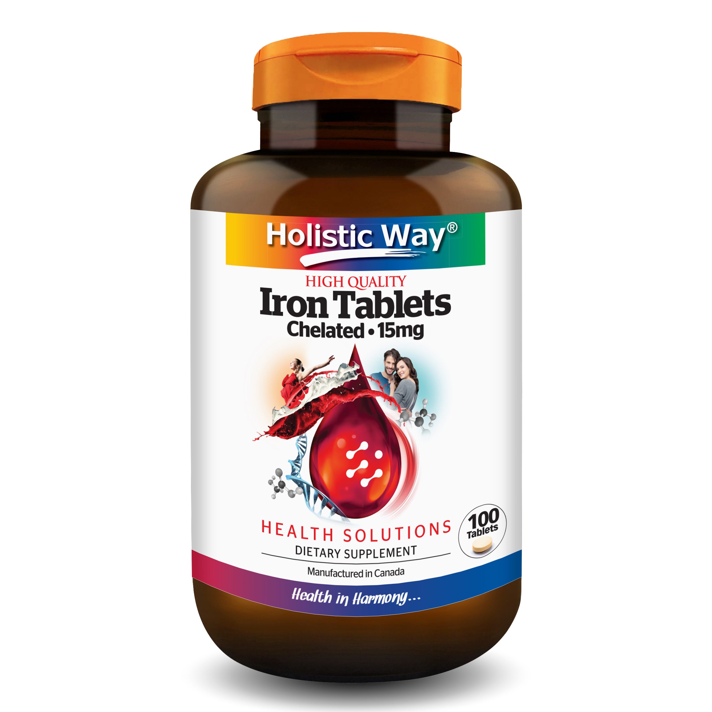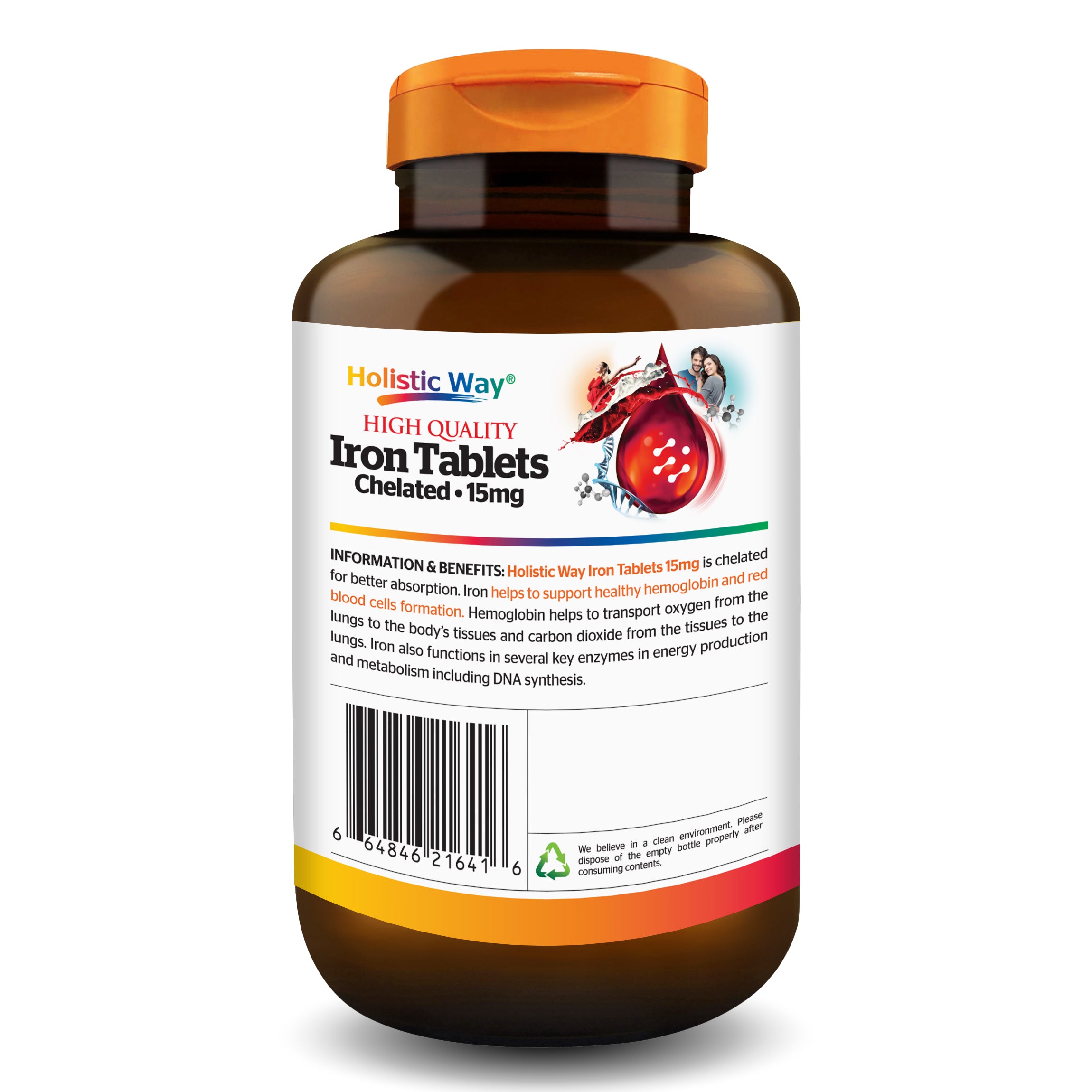 Holistic Way Iron Tablets 15mg are specially formulated to help support healthy hemoglobin and red blood cells formation. The iron in these tablets is chelated, which means it is in a form that is better absorbed by the body.