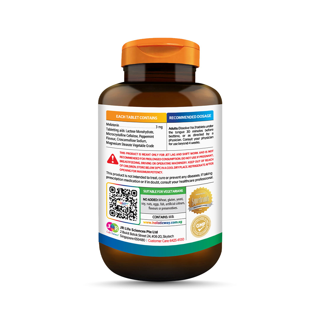 Holistic Way Melatonin 3mg is a sublingual tablet that dissolves quickly under the tongue, allowing for faster and more effective absorption compared to traditional oral tablets. This easy-dissolve tablet works fast to promote and support sound sleep, making it an ideal solution for those struggling with sleep problems.