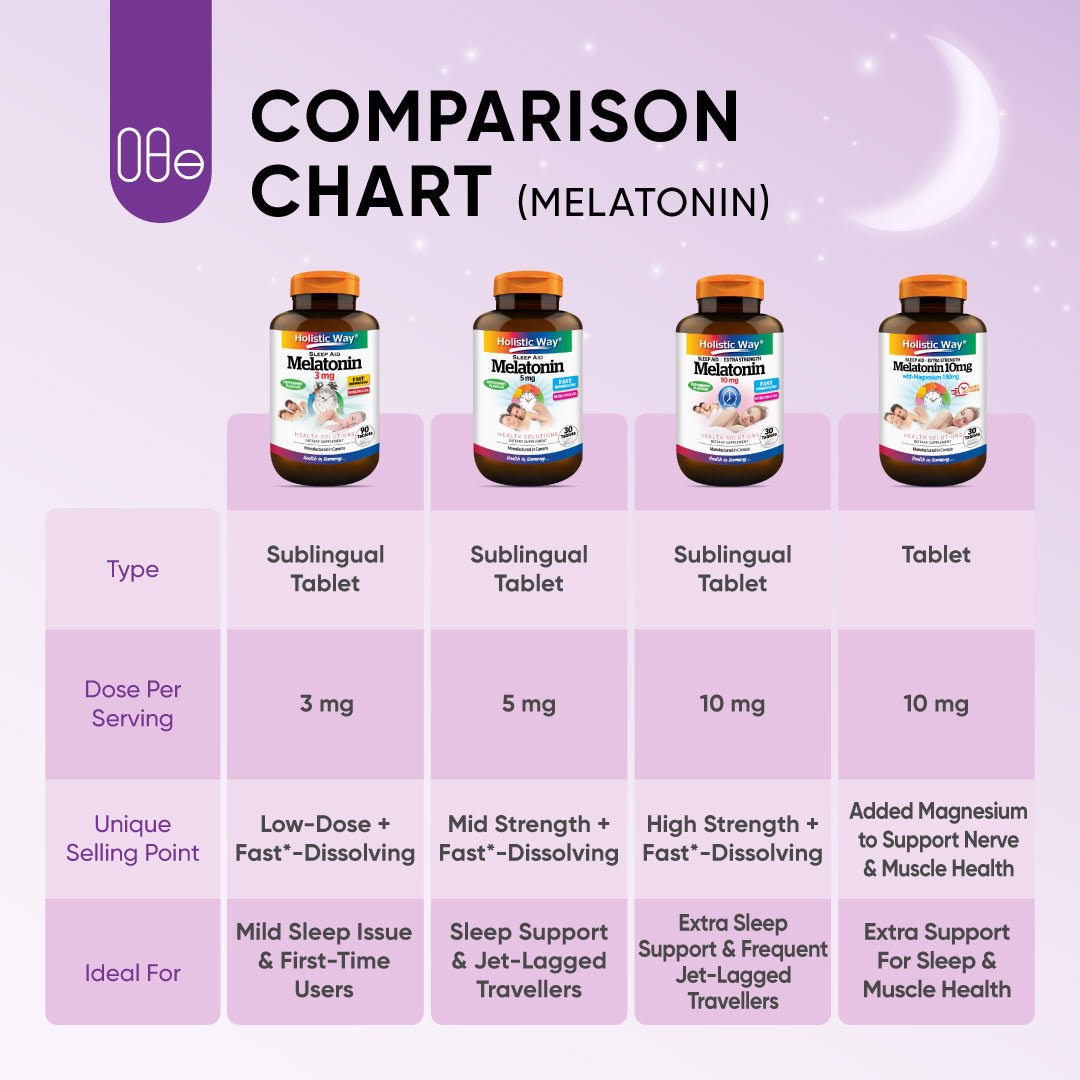 Holistic Way Melatonin 3mg is a sublingual tablet that dissolves quickly under the tongue, allowing for faster and more effective absorption compared to traditional oral tablets. This easy-dissolve tablet works fast to promote and support sound sleep, making it an ideal solution for those struggling with sleep problems.