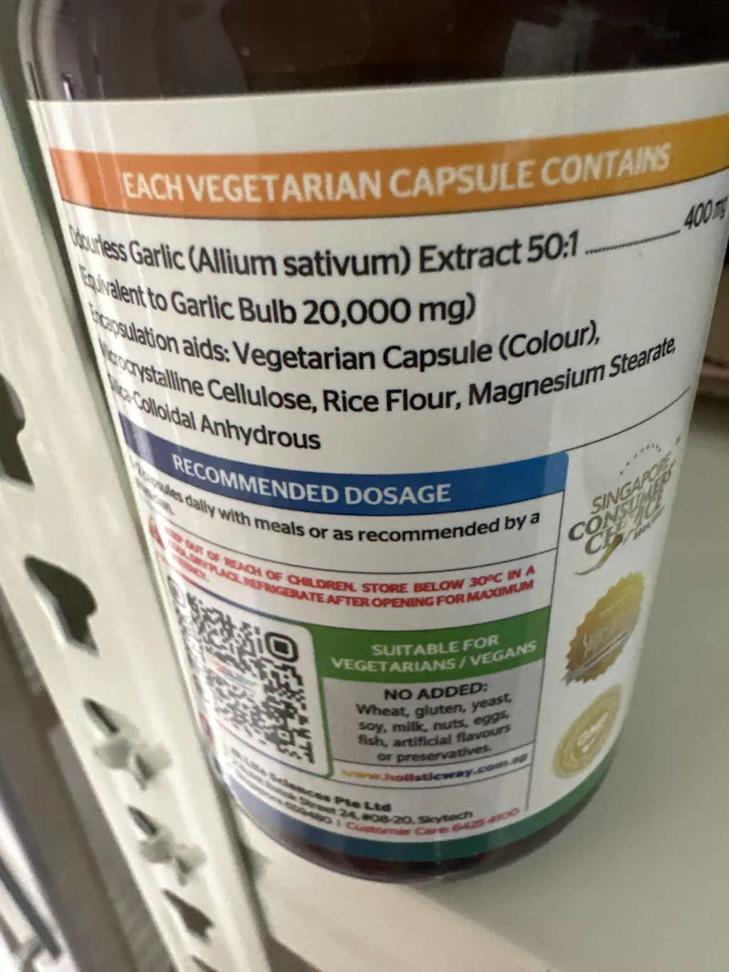 - Odourless Garlic (Allium sativum) Extract 100:1 200 mg (Equivalent to Garlic Bulb 20,000 mg)