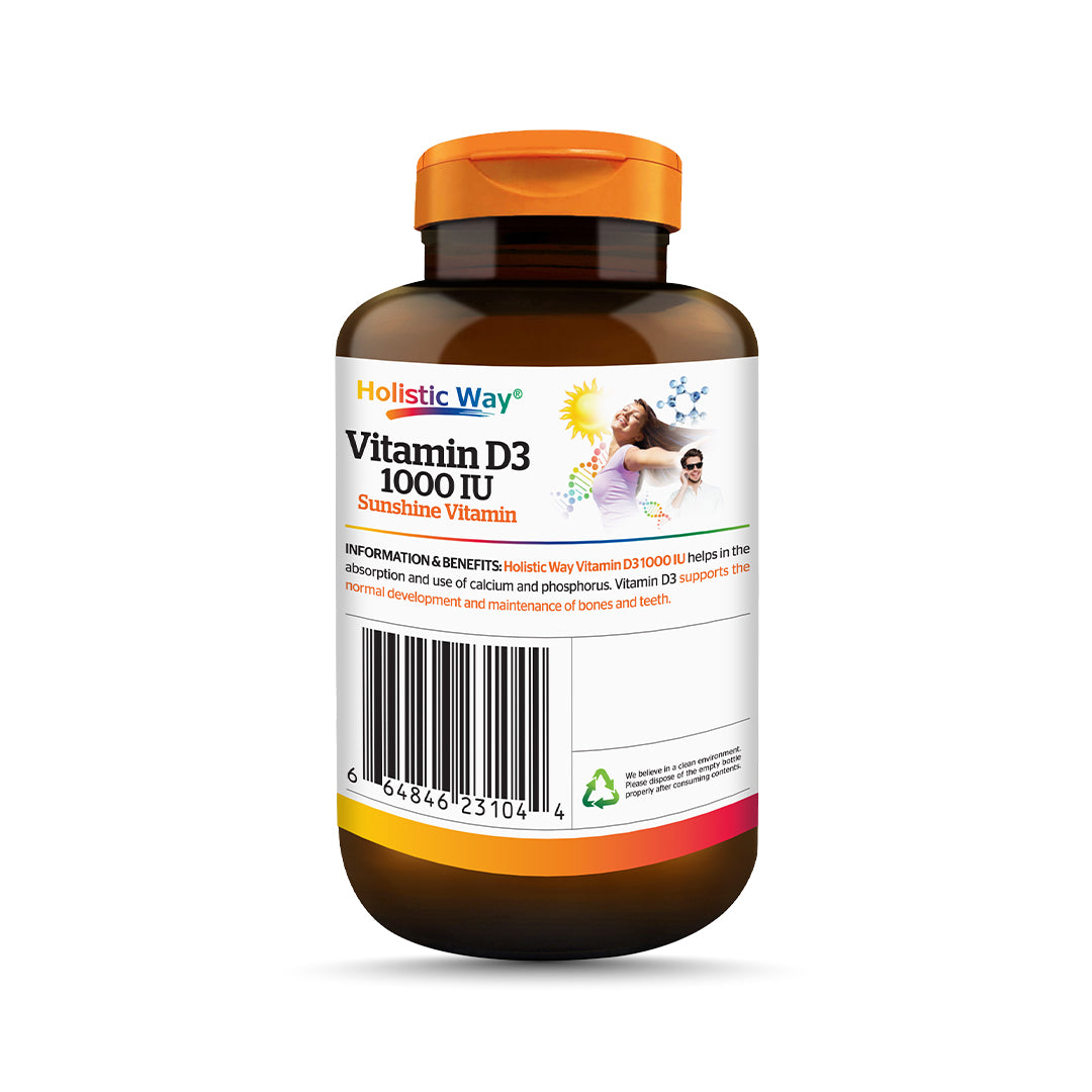 Holistic Way Vitamin D3 1000IU is an essential supplement that supports the absorption and utilization of calcium and phosphorus in the body. This vital nutrient is essential for the normal development and maintenance of strong bones and teeth.
