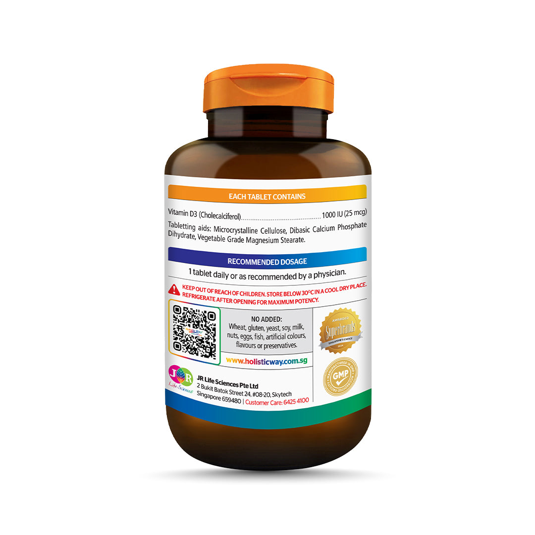 By promoting the absorption and utilization of calcium and phosphorus, Holistic Way Vitamin D3 1000IU supports the healthy growth and maintenance of bones and teeth. This is particularly important for individuals who may be at risk of osteoporosis or other bone-related conditions.