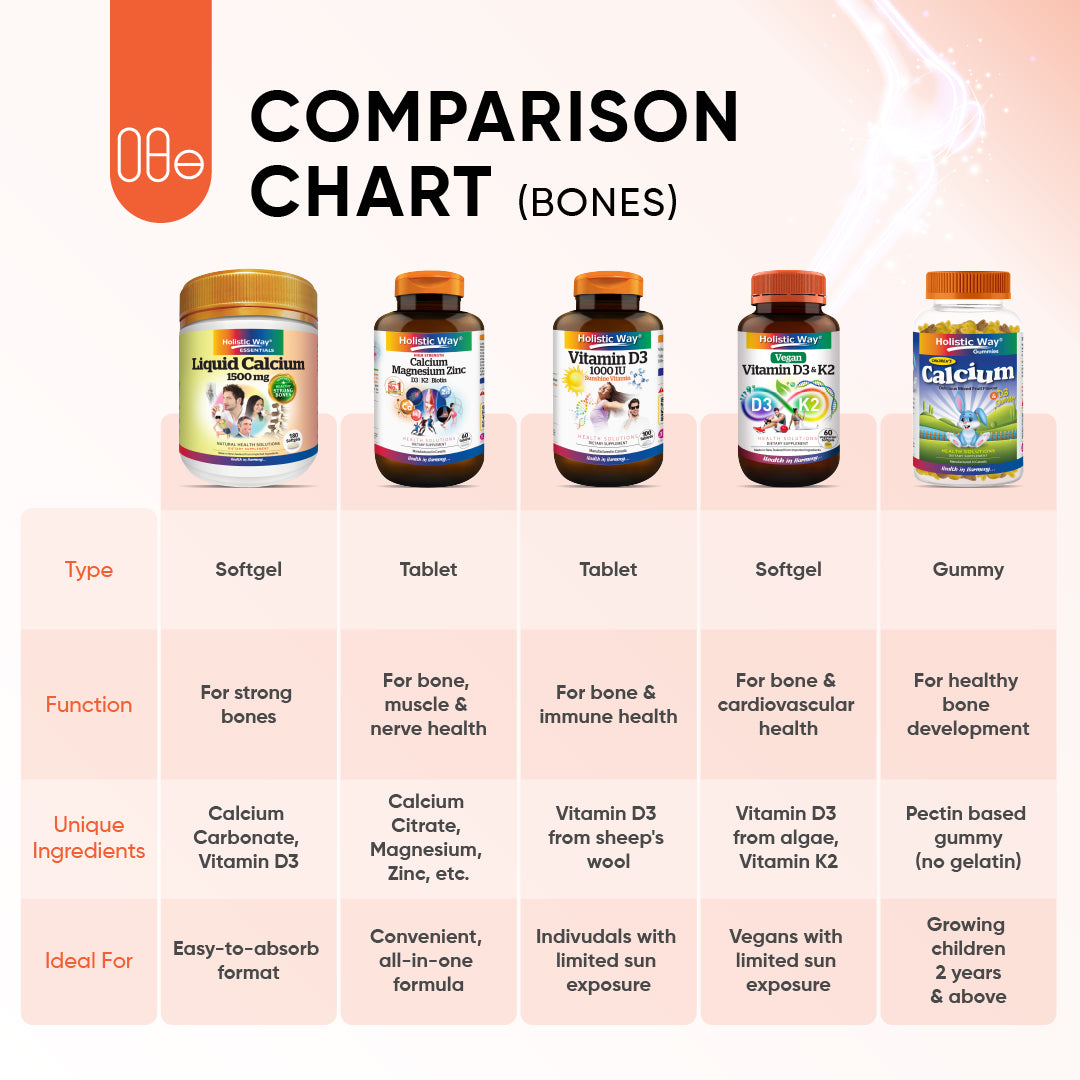 By promoting the absorption and utilization of calcium and phosphorus, Holistic Way Vitamin D3 1000IU supports the healthy growth and maintenance of bones and teeth. This is particularly important for individuals who may be at risk of osteoporosis or other bone-related conditions.