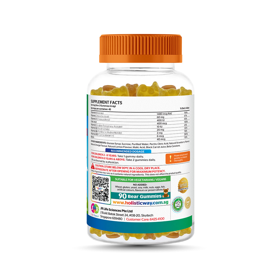 HW 儿童综合维他命软糖是维持健康所必需的。综合维生素可以帮助支持健 康的大脑,眼睛,骨骼,皮肤,牙龈,牙齿,儿童的健康生长和发育。