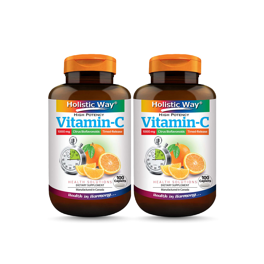 Holistic Way强效维生素-C 1000毫克(缓慢性释放)是个高效抗氧化剂。此配方添加了天然 柑橘类生物类黄酮;此植物成份广泛用于改善体内循环。由于是缓慢性释放片剂,此产品有 效的提供身体日常所需的维生素-C。维生素-C有助于支持健康的免疫系统功能和刺激胶原 蛋白增生。这个缓慢性释放片剂配方亦对于保持健康的细血管,皮肤,骨骼,牙龈和牙齿有 所帮助。维生素-C 也促进伤口愈合,并且有助于消除体内的自由基。