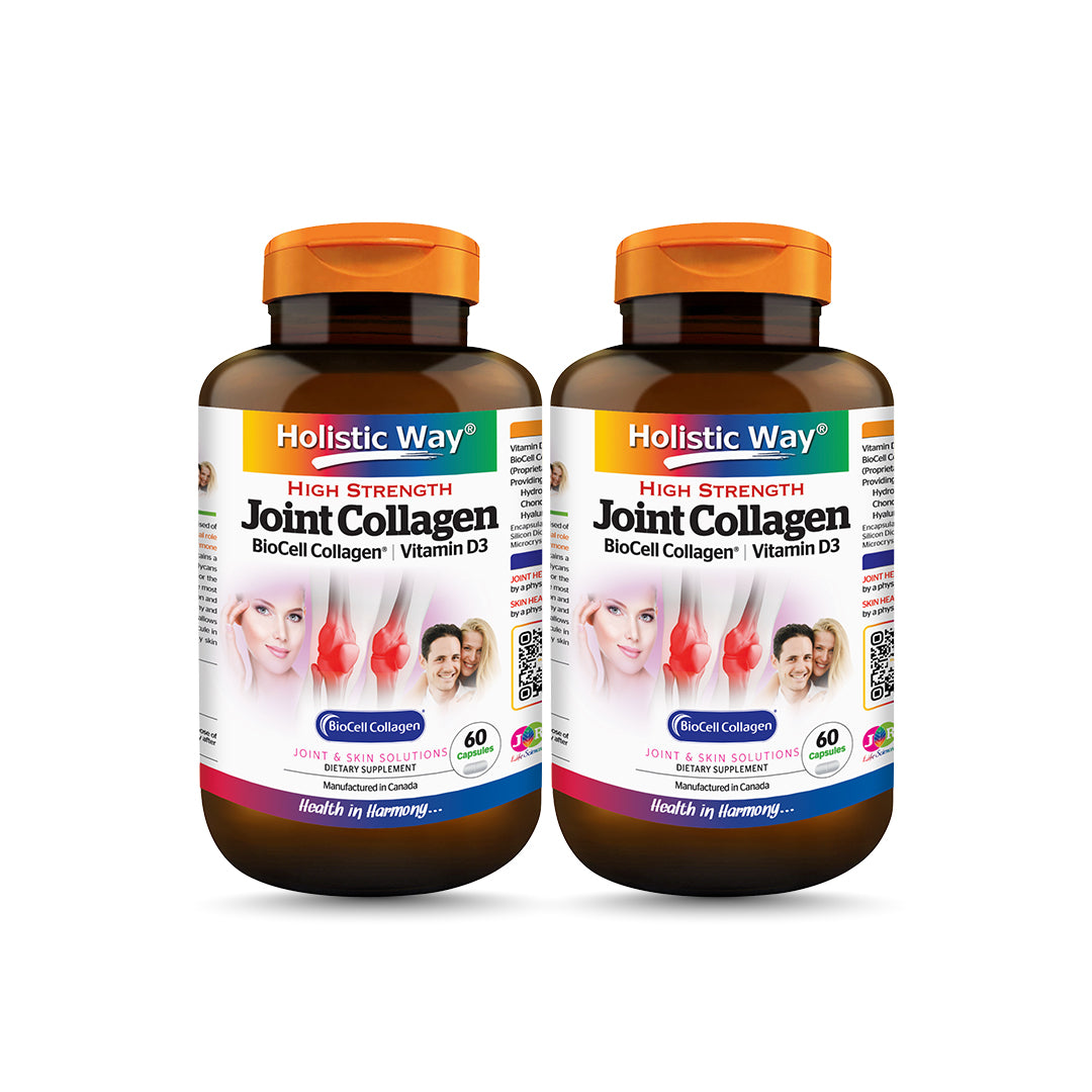 Holistic Way强效关节胶原蛋白含有BioCell Collagen®和维生素D3。此易吸收和分解组合对于 软骨,膝盖滑膜液,和皮肤的健康是必需的。BioCell Collagen®源自于无荷尔蒙和抗生素的鸡 软骨。它模仿人类的关节软骨,并且含有专属,天然的水解胶原蛋白类型II, 葡糖氨基葡聚糖 (GAGs)为硫酸软骨素和透明质酸。这些成份处于高吸收的形式,有助于维持关节健康。水解胶 原蛋白类型II是在软骨内最多的蛋白质,有助于刺激软骨细胞和胶原蛋白增生。透明质酸是建 造健康软骨的重要因素之一。它也是膝盖滑膜液的重要成份之一,或扮演着润滑剂的功效,从 而有助于关节灵活度。硫酸软骨素也可作为冲击吸收分子,从而促进关节健康。BioCell Collagen®也对皮肤健康有所帮助,它协助改善皮肤纹理和组织